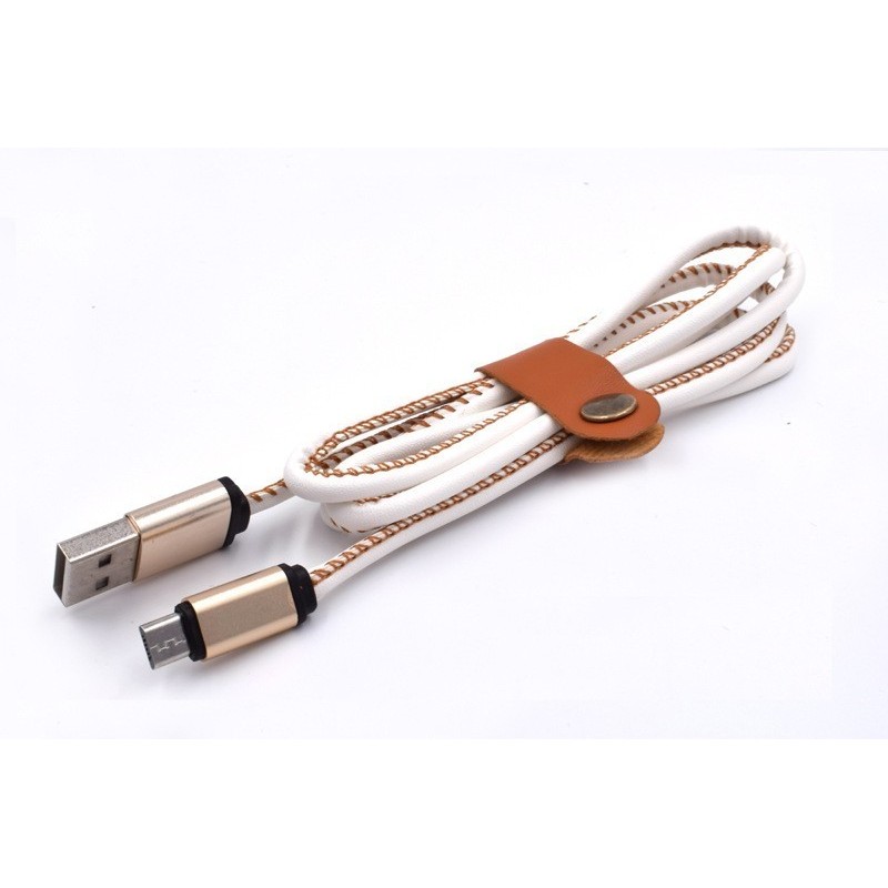 "Представяме ви нашия луксозен USB кабел за зареждане на смартфони - micro USB към USB. Този кабел е с кожено покритие и декоративен шев, който му придава стил и изтънченост.
