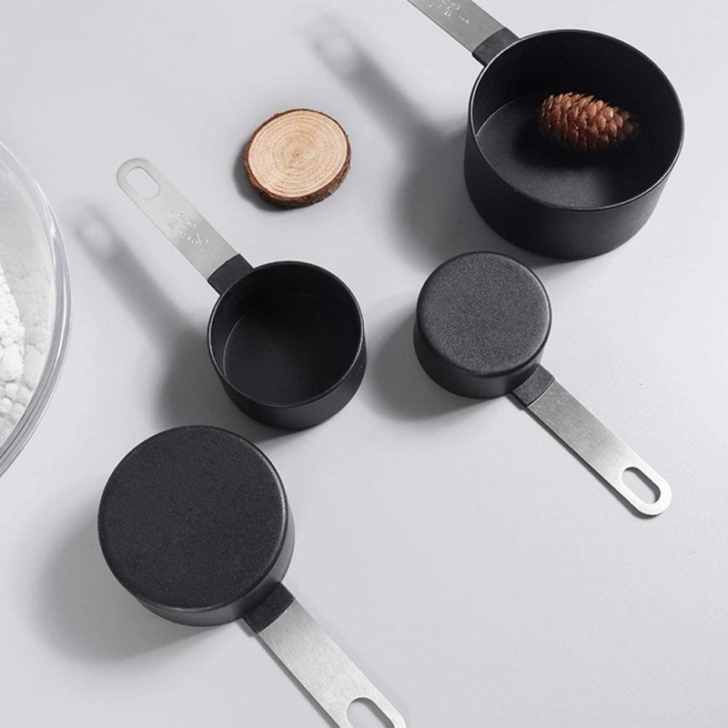 Комплектът включва 4бр. чаши за измерване с различни капацитети: 1 чаша с обем от 236 мл., 1/2 чаша с обем от 118 мл., 1/3 чаша с обем от 78 мл. и 1/4 чаша с обем от 59 мл. Тези чаши са идеални за измерване на течности, както и за сухи съставки.