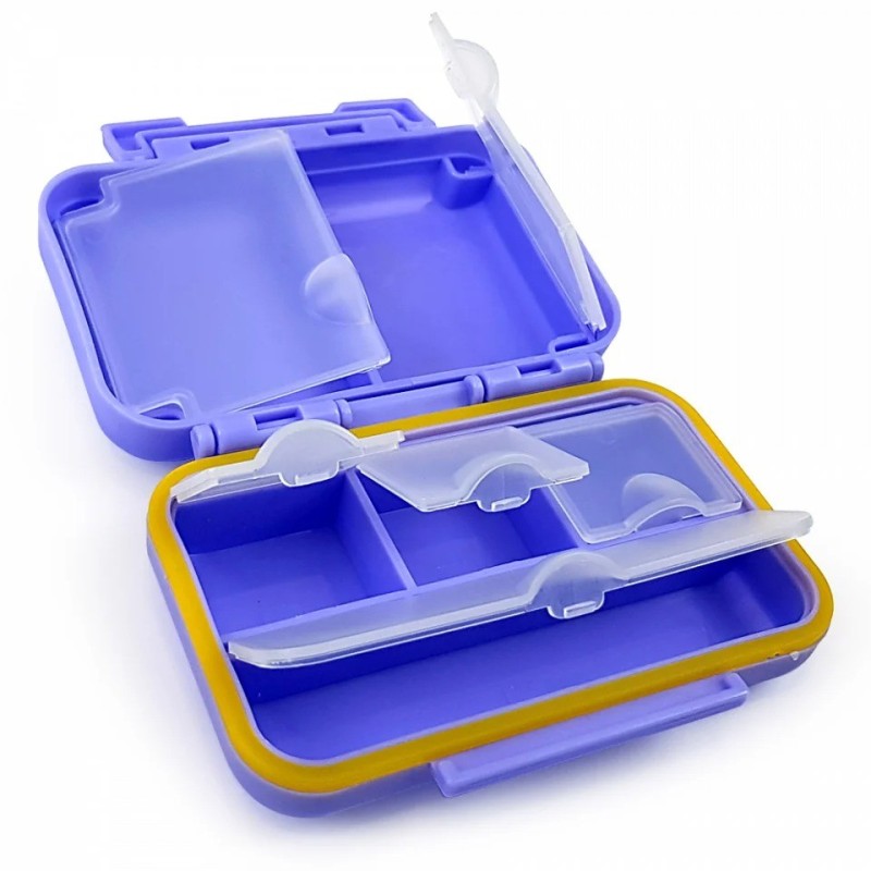 Кутията за хапчета с отделения във форма на красиво виолетово куфарче, ще направи приемането на лекарствата от детето ви приятно и лесно. Органайзера за лекарства е много практичен за ежедневна употреба благодарение на компактният си размер и сигурното затваряне на всяко едно отделение вградено в "куфарчето".