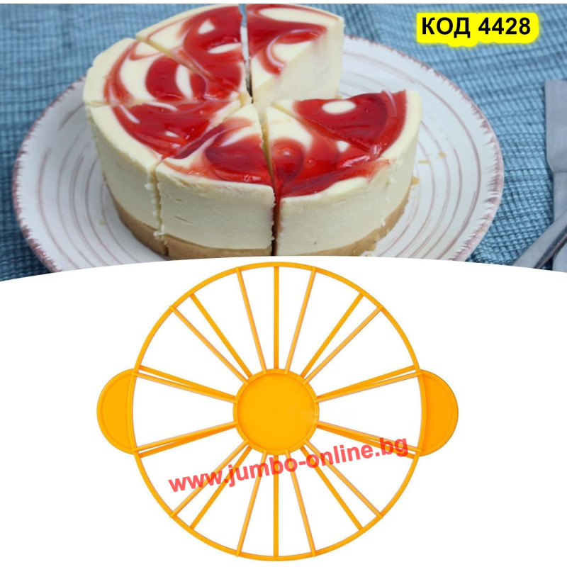 Осигурете си перфектно равни парчета торта с този удобен разделител! С двустранно разграфяване – за 10 или 12 парчета, и ясно обозначени дръжки, той прави отбелязването лесно и прецизно. Изработен от здрав полипропилен с диаметър 26,8 см, този инструмент е стабилен, лесен за използване и почистване. Идеален помощник за всяка домакиня, която обича перфектно подредени десерти! 🍰