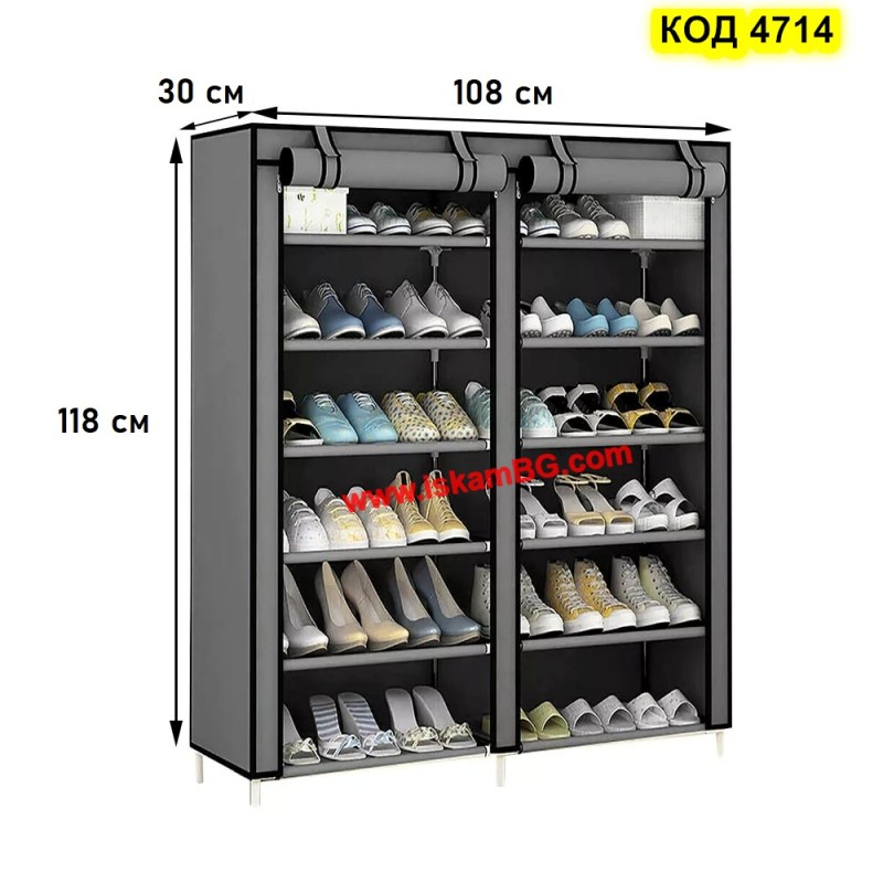 Големият двоен текстилен шкаф за обувки с 12 рафта е перфектният избор за всеки, който цени реда, практичността и елегантния дизайн.