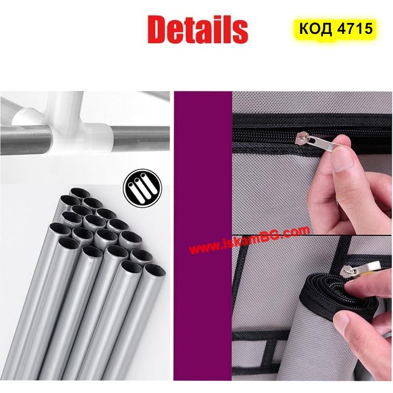 Дишащ материал: 100% PE калъф с постоянен приток на въздух, който предотвратява неприятни миризми и поддържа вещите свежи.