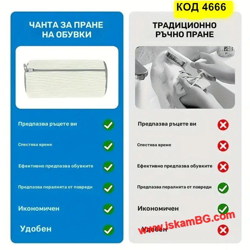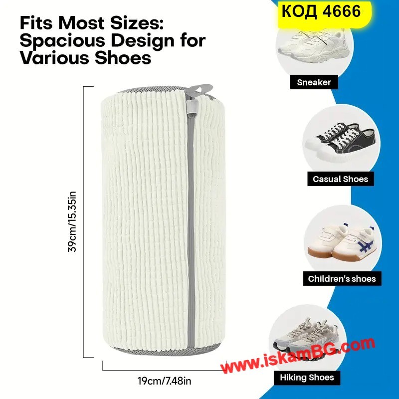С тази мрежеста чанта за пране на маратонки и обувки в пералня прането на обувки става лесно, безопасно и ефективно. Тя предпазва обувките от деформация, надраскване и износване, като същевременно защитава пералнята от удари и шум.