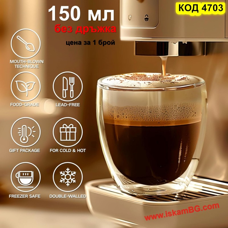 Двустенна чаша за кафе еспресо – 150 мл, без дръжка