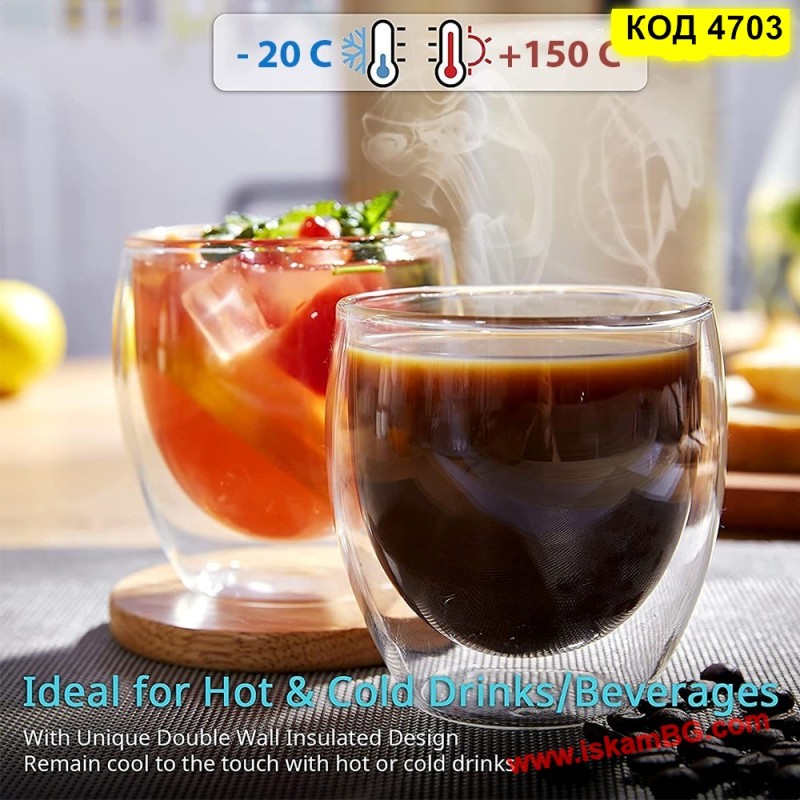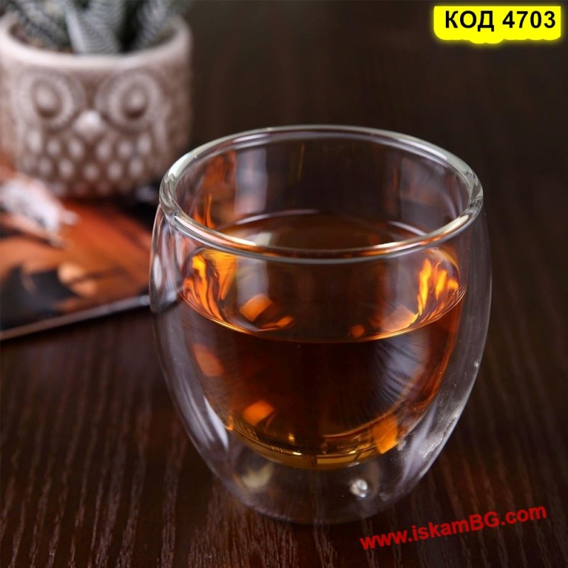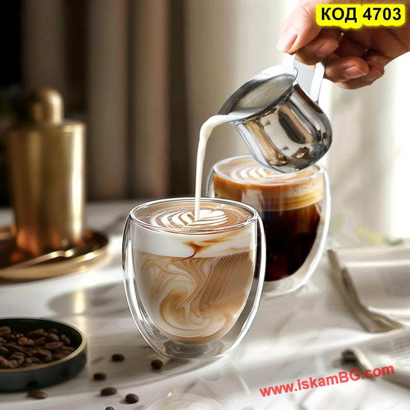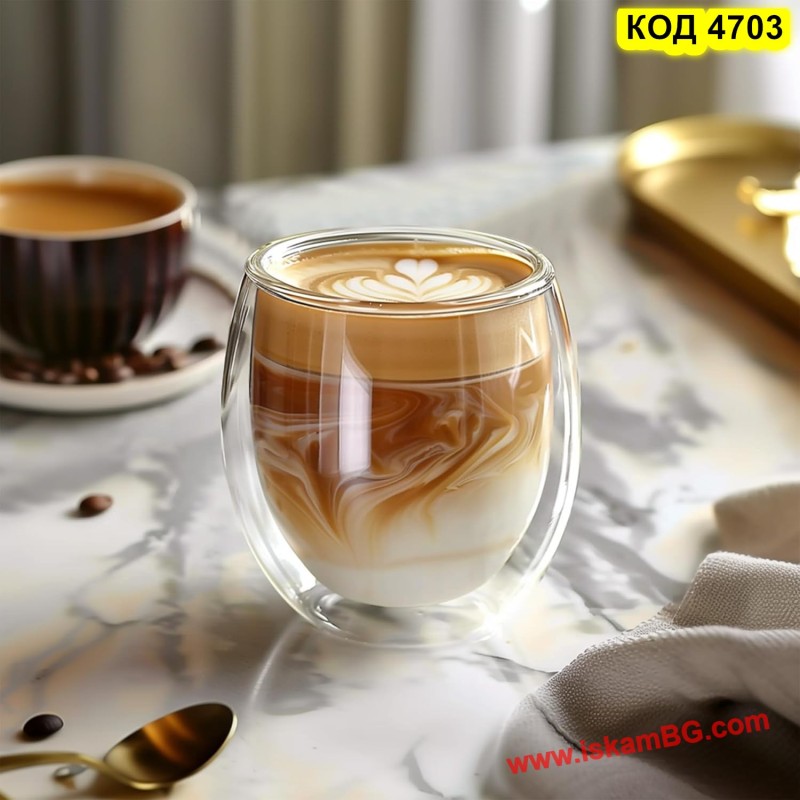 1 брой стъклена двустенна чаша за кафе с вместимост 150 мл (без дръжка)