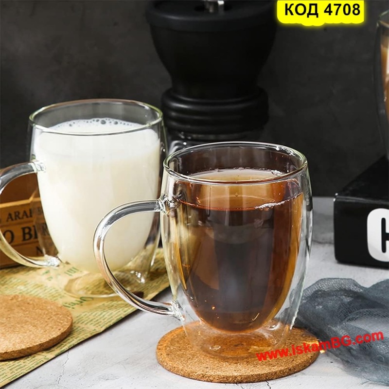Двустенна чаша за чай, капучино, кафе – 350 мл, с дръжка