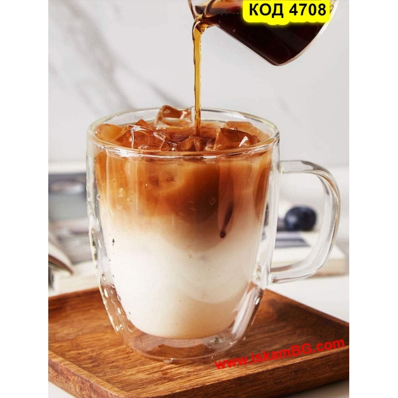 1 брой стъклена двустенна чаша за кафе с вместимост 350 мл (с дръжка)