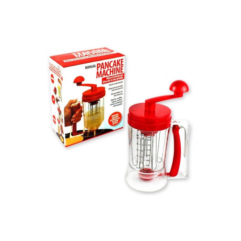 Подгответе сместа и я поставете в каната,с помощта на дръжката на капака разбъркайте до получаване на хомогенна смес и със специалния спусък,може лесно да пропускате нужното количество смес направо върху тигана.