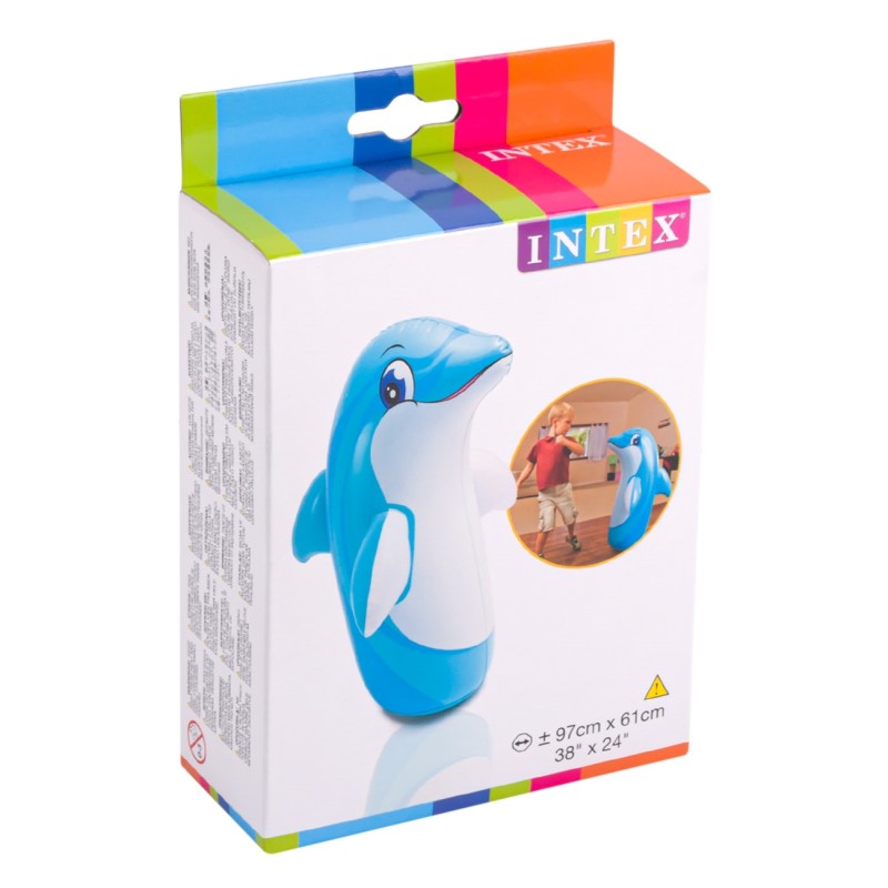 3D надуваема играчка с пясъчна основа във формата на животно в ярки цветове - в зависимост от наличностите се предлагат делфин, динозавър и тигър.
