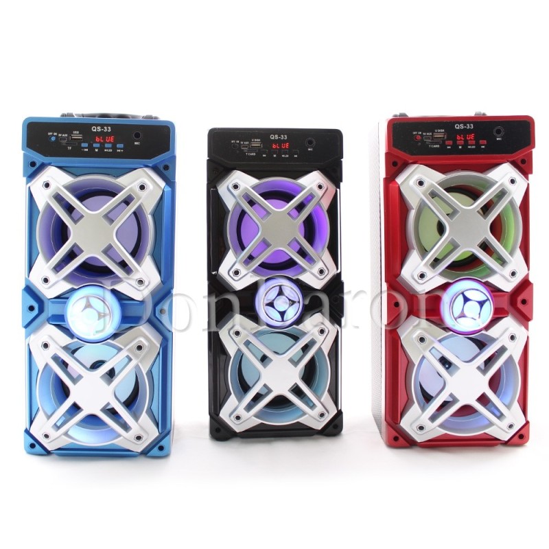 Свържете лесно преносимата bluetooth тонколона QS-33 с вашия таблет, компютър, мобилен телефон или всяко устройство, което поддържа bluetooth. Направете си забавна караоке вечер у дома, защото тонколоната върви в комплект с микрофон.