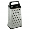 Кухненско ренде за настъргване, изработено от неръждаема стомана с ергономична пластмасова дръжка в черен цвят.
